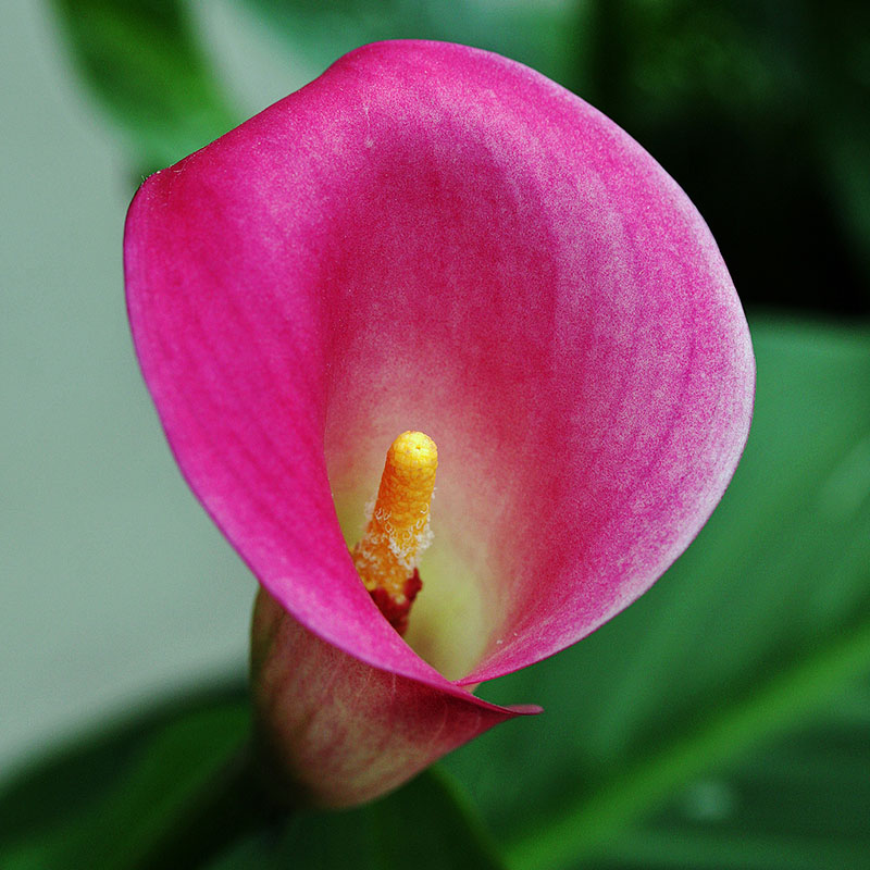 Ремани Пинк — получил свое название благодаря красивым нежно-розовым цветам. Это травянистое растение, относящееся к многолетним видам, имеет крупные листья, напоминающие стрелу. Они растут вертикально вверх, плавно прогибаясь под своей тяжестью, зелень выглядит насыщенно и сочно. Компактный сорт, в высоту достигает 60 см, размножается в основном делением и семенами Цветение май-август (в зависимости от срока высадки клубней). Количество цветков зависит от размера клубня, может быть от 3 до 10. ПОСАДКА М УХОД. Рано весной в горшки для комнатной культуры, в открытый грунт — после того, как минует угроза заморозков. Клубни сажают на глубину 5-10 см и хорошо проливают почву, поскольку каллы любят влагу. Для посадки каллы подойдет притененный участок. Идеальный вариант, место под негустыми кронами деревьев. Чтобы было достаточно светло, а солнечные лучи не обжигали листьев. Очень эффектно смотрятся каллы, рядом с искусственным водоемом. Отлично цветет и растет только в тепле, где температура не ниже 18°C, самая оптимальная температура 22-23°C. Не переносит сквозняков. Цветоносы этого растения высокие, которые идут прямо от низа растения. На открытом воздухе это прекрасное растение цветет 1 месяц, а в закрытом помещении — 14 дней. Осенью растения сбрасывают листья. На зиму клубни каллы нужно выкопать и хранить в непромерзаемом помещении.